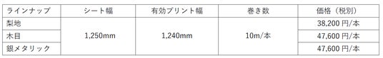 市場の従来の化粧シートの中では最も幅広の1,250mm幅のエアフリーシート*7をご用意しました。大型看板の標準サイズの4x8(シハチ)板*8の板材にもシート1枚で簡単に貼付け加工ができます。また在庫を最小限にできる10メートル巻きの短尺ロールで販売し、小柄な方でも取り扱いが簡単です。