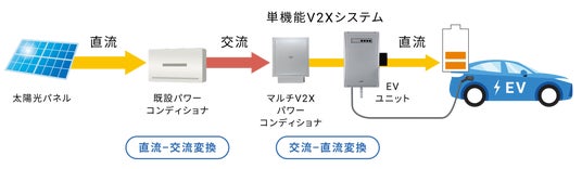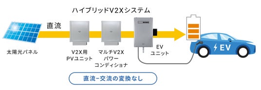 <ハイブリッドV2Xシステム>変換ロスがなく、太陽光発電の電力を最大限活用