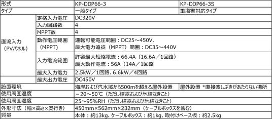 ・V2X用PVユニット KP-DDP66-3(一般タイプ)、KP-DDP66-3S(重塩害対応タイプ)