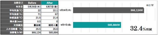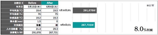 ・大手老舗百貨店の情報から、この両日は空調をあまり使用していない時期での比較