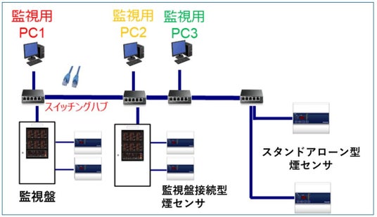 新ディスプレイシステムは、監視盤接続タイプセンサとスタンドアローンセンサをあわせて最大300台まで接続可能。