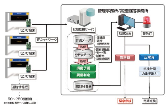 当社は、道路における付帯設備の老朽化・延命化を主眼に保守メンテナンスの効率化・高度化のための技術開発としてモニタリング技術の開発を推進してまいりましたが、このたび、株式会社ネクスコ東日本エンジニアリング、東京理科大学との共同研究により、道路情報板支柱の異常有無を遠隔で自動検知するモニタリングシステムを開発しました。