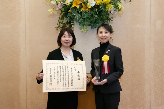 トロフィーを受け取るパナソニックHD参与で企業市民活動担当の北川恵