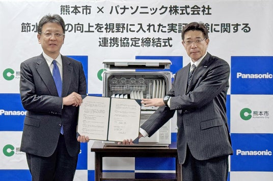 熊本県熊本市(以下、熊本市)とパナソニック株式会社 くらしアプライアンス社(以下、パナソニック)は、市民の節水意識の向上と地下水保全に向けた取り組みの充実に共同で取り組むことに合意し、協定を締結しました。