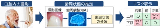この課題解決に向けて、パナソニックは大阪大学大学院歯学研究科および同歯学部附属病院と共同で、歯周病検知AIおよび口腔内カメラで撮影した画像のAI解析による歯周病の罹患リスクを判定できるツールの開発と実証を行っています。