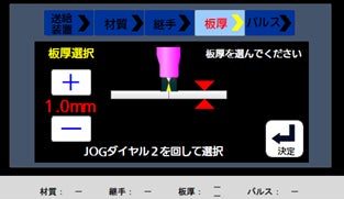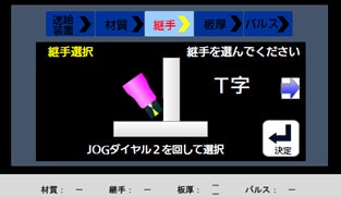 経験の浅い方にも安心なサポート機能も充実しており、溶接作業の推奨条件を自動選択する「溶接ナビ」は、溶接継手などの情報がイラストで表示されることで作業者は実際の作業をイメージしながら簡単に設定することができ、溶接条件出しの時間を短縮します。「溶接コンシェルジュ」は、現場の作業状況や作業者の課題を液晶表示に従って入力していくことで経験や専門知識が必要な溶接パラメータ調整をわかりやすくサポートします。