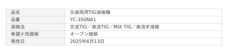フルデジタル溶接機のフラッグシップモデルとして交直両用TIG溶接機「YC-350NA1」を発売 ~より幅広い溶接施工に対応、操作の分かりやすさ、使いやすさを追求~