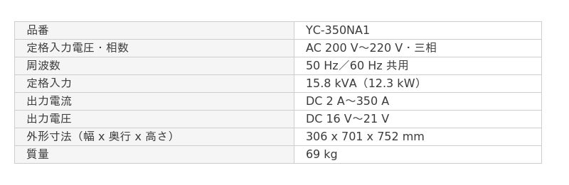【交直両用TIG溶接機「YC-350NA1」定格仕様】