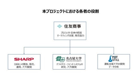 住友商事株式会社(以下、「住友商事」)、名古屋大学未来社会創造機構、株式会社ポットスチル、シャープ株式会社(以下、「シャープ」)の4者は、NPO法人高齢者安全運転支援研究会と大阪府の八尾自動車教習所の協力のもと、シャープのモバイル型ロボット「RoBoHoN(ロボホン)」(以下、「ロボホン」)を活用したドライバエージェントシステム(※1)による高齢ドライバ向け運転支援ソリューションの実証を2025年1月23日、28日に大阪府の一部の公道で先行実施します。また、同年4月からは全国の公道でも実証を行います。それらの実証を経て2025年度中のプレサービス提供開始、2026年度中の商用化を目指します。