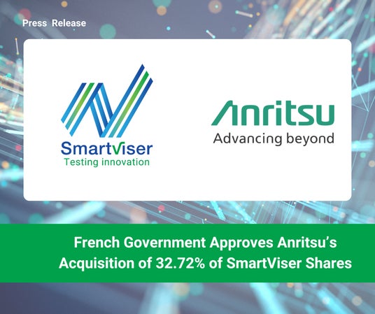 アンリツ株式会社(代表取締役社長 濱田 宏一)は、SmartViser SAS(本社:フランス、以下SmartViser)の発行済み株式のうち、32.72%分の取得手続きを完了したことをお知らせいたします。