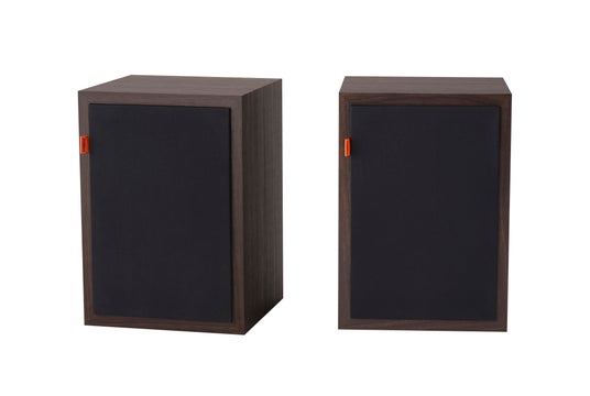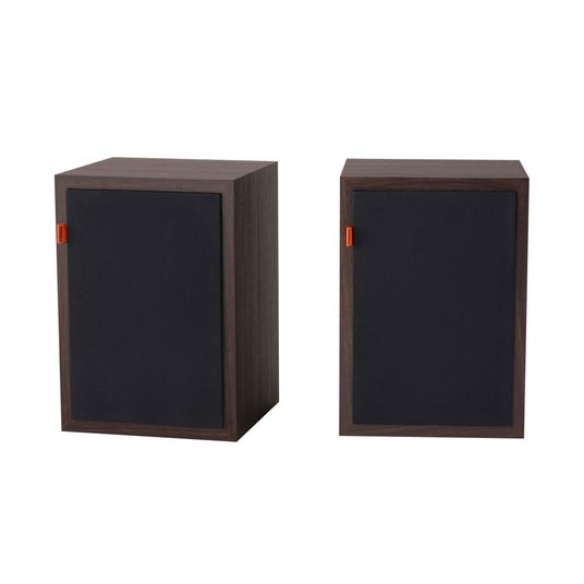 懐かしさを感じさせるグリルをあしらった伝統的デザインのブックシェルフ型エンクロージャーは、イングリッシュウォールナットの木目調仕上げと相まってインテリアに馴染みやすく、落ち着きを感じさせます。