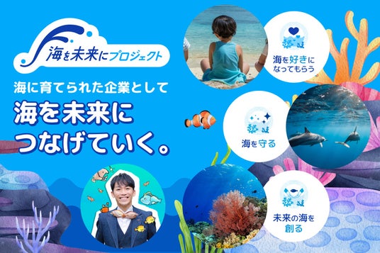 豊かな海を次世代へつなぐために当社が取り組んでいる3つのテーマ「海を好きになってもらう」「海を守る」「未来の海を創る」について、これまでの活動内容や最新の取り組みを紹介しています。