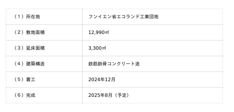 本邦、並びにベトナム国内でのインフラシェアリング機器の受注増加に対応すべく、生産能力拡大を目的として、2024年9月10日付で公表いたしました「連結孫会社の工場移転に伴う新工場建設に関するお知らせ」に記載のとおり、2024年12月に近隣の新工業団地において新工場建設に着工しております。2025年5月末時点では外壁工事がおおむね完了しましたのでご報告いたします。