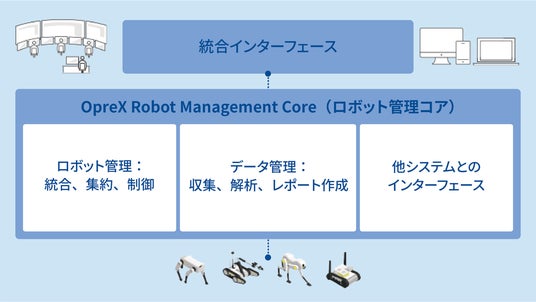 「OpreX Robot Management Core」は、横河電機のロボットソリューションの主要製品です。ロボット管理のプラットフォームとなるこのソフトウェアは、従来人間が行っていたプラント保守作業を実行するさまざまな種類のロボットを一元管理することで、お客様の施設のより安全で効率的な管理を支援します。プラントの制御システムや安全計装システムに接続すると、取得されたデータを使用してロボットに指示することができ、自律的なプラント運用への第一段階が実現できます。シェルの「ORE」技術を搭載することにより、「OpreX Robot Management Core」の活用が大きく広がります。