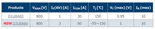 本製品は、実績のある小型面実装パッケージ「SOPA-4」を採用し、内部構造を一新することで、小型・薄型パッケージながら定格電流3A、IFSMも60Aを達成しました。