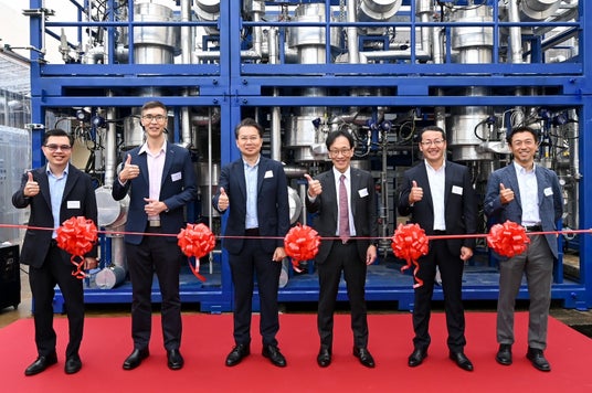 IHIおよび当社のシンガポール法人IHI ASIA PACIFIC PTE. LTD. (以下,「IHIAP」)は,シンガポール科学技術研究庁(A*STAR:Agency for Science, Technology And Research)傘下の研究機関であるISCE²※1(Institute of Sustainability for Chemicals, Energy and Environment)と共同で,水素とCO2から持続可能な航空燃料(以下,「SAF」)※2の原料となる液体炭化水素を合成する一連のプロセスを検証することを目的として,ISCE²の敷地内に,液体炭化水素を1日当たり5kg製造できる小型スケールの製造試験装置を設置が完成し,今後実証していきます。1月15日,この稼働開始に伴う開所式をISCE²内で開催しました。