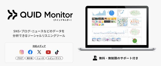 Quid Monitorは、SNS・ブログ・消費者レビュー・ニュース・掲示板に投稿されている膨大なデータからキーワード入力だけで簡単に分析が行えるソーシャルリスニングツールです。