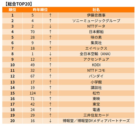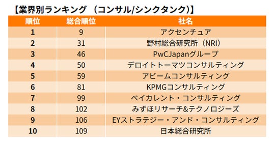 例年上位のアクセンチュア(9位/前年12位)を筆頭に、PwC Japanグループ(45位/前年123位)、4デロイトトーマツコンサルティング(49位/前年99位)など、飛躍的にランクアップした企業が目を引く結果となりました。外資系コンサルティング企業へ投票した就活生のコメントでは、