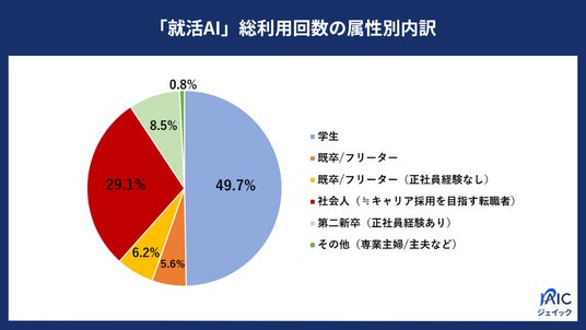 「就活AI」の利用をきっかけとして、当社の新卒スカウトサイト「Future Finder(R)」や、フリーター・既卒・第二新卒者向けの就職・採用支援サービス「ジェイック 就職カレッジ(R)」等に登録される方なども増えています。累積の総利用回数は増加し続けており、昨年2月の利用回数10万回突破から約1年で50万回を突破しました。
