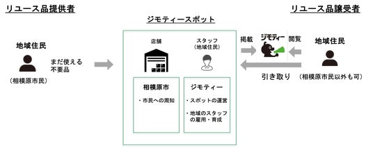 株式会社ジモティー(以下、ジモティー)は、神奈川県相模原市(以下、相模原市)と2022年12月に締結したリユースに関する協定に基づき、「ジモティースポット相模原」を2025年4月8日(火) にプレオープン(持ち込みのみ受付)、4月10日(木) にグランドオープン(販売も開始)します。ジモティースポット相模原は、当社の運営する官民連携型のリユース拠点において相模原市に初の出店となります。