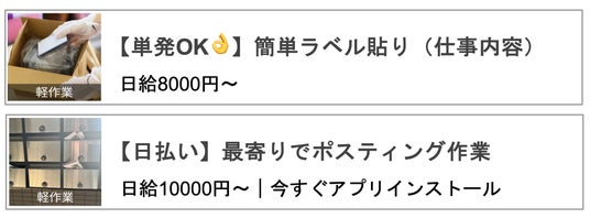 特に成果が高かったクリエイティブでは、実際のアプリ求人を想起させる「働くシーン」の画像を使用し、『1.具体的な仕事内容』、『2.日給・月給・時給などの報酬額』、『3.単発・日払い可』といった気軽さを訴求。ジモティー通常投稿に近いデザインとすることで、ユーザーが違和感なく行動に移しやすくなっています。