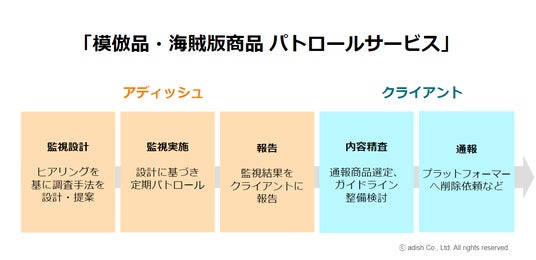 デジタルエコノミー特化のカスタマーサクセスソリューション・プロバイダーであるアディッシュ株式会社(本社:東京都品川区、代表取締役 江戸 浩樹、証券コード:7093、以下 アディッシュ)は、「模倣品・海賊版商品 パトロールサービス」の提供を、2024年9月19日より開始します。