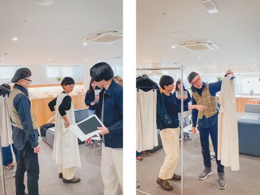 クラシコム佐藤が試着しながらfoufouチームと協議している様子