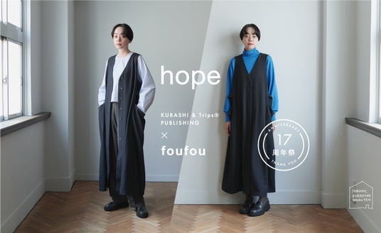 ライフカルチャープラットフォーム「北欧、暮らしの道具店」において、雑貨や衣類などの開発・販売、メディア運営などを行う株式会社クラシコム(本社:東京都国立市、代表取締役社長:青木耕平、以下「当社」)と、2023年8月にクラシコムにグループジョインした株式会社foufou(フーフー)は、初のコラボレーションとなる「hopeと名付けた、ジレにもなるワンピース」を2024年9月18日(水)に「北欧、暮らしの道具店」にて販売開始いたしました。
