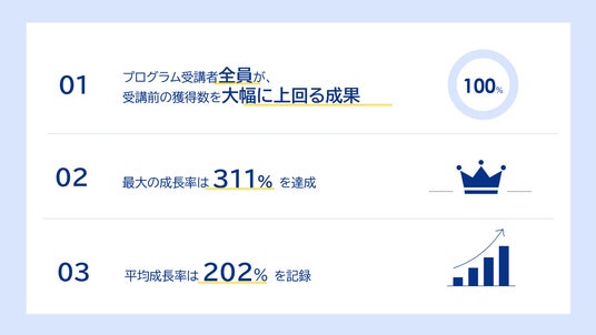 当社の中核企業でコンシューマー向けの事業を展開するエフエルシープレミアム株式会社 (東京都豊島区 代表取締役:小泉 まり、以下「FLCP」)には27名の新卒社員が入社いたしました。FLCPでは入社直後から実践的なスキルを身につけ、即戦力として活躍できる独自の育成施策の一つとして、マイクデバイスと独自開発された解析システムを組み合わせた発話解析プラットフォーム「ELI」を導入しております。昨年度FLCPに入社した新卒社員を対象に実施した2か月間の「ELI」を使用した研修成果として、受講者全員が受講前の獲得数を上回る成果を達成しました。また、平均成長率は200%超と、短期間での成長を実現しており、本研修が生産性の向上に貢献した結果となりました。