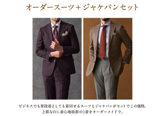 対象プランご利用で!本格オーダースーツ2着47,000円~(税込51,700円~)+高級オプション3,000円分 or GSクローゼット4000円相当付き