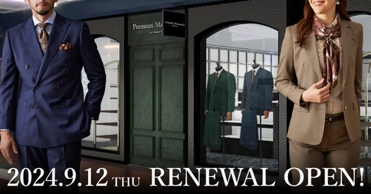 本格オーダースーツ専門店「グローバルスタイル」は、有楽町駅、日比谷駅、銀座駅、銀座一丁目駅から徒歩圏内の『有楽町電気ビルヂング北館 1F』に【Premium Marunouchi 本店】を、9月12日(木)にリニューアルオープンいたします。