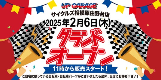 カー&バイク用品のリユース専門店「アップガレージ」を全国展開する株式会社アップガレージグループ(本社:神奈川県横浜市、代表取締役社長:河野映彦)は、2025年2月6日に、直営店の「アップガレージサイクルズ相模原由野台店」を新規出店いたします。アップガレージサイクルズ業態9店舗目のオープンとなります。