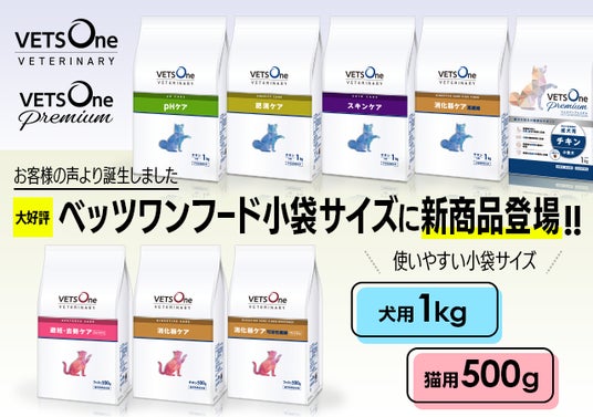 ペットゴー株式会社(本社:東京都中野区、代表取締役社長:黒澤弘、証券コード:7140)は、ペットヘルスケアブランド「ベッツワン(VETSOne)」から販売中の食事療法食「ベッツワンベテリナリー」および総合栄養食「ベッツワンプレミアム」小袋サイズ(犬用1kg・猫用500g)の新商品を発売しました。