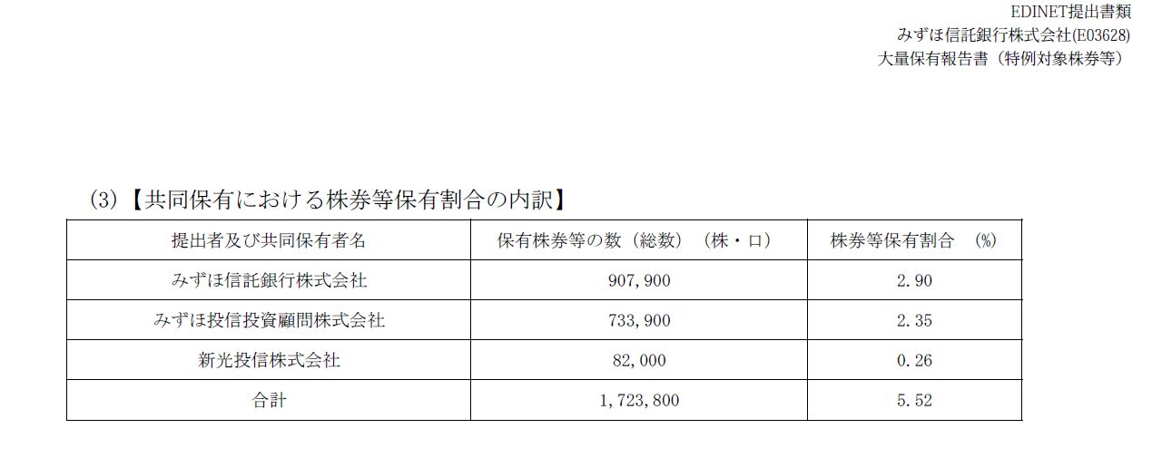 7月23日にみずほ信託銀行株式会社から、FPG(7148)株の大量保有報告書が提出された。 1,723,800株、3社で5.52%になる。みずほ銀行はFPGのメインバンクですから、一種の迂回投資でしょうか・・・。銀行系はちまちまと儲か... ...続きを読む