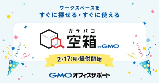 GMOインターネットグループのGMOフィナンシャルホールディングス株式会社の連結会社で、バーチャルオフィスサービス「GMOオフィスサポート」(URL:https://www.gmo-office.com/)を提供するGMOオフィスサポート株式会社(代表取締役社長:松永 知也 以下:当社)は、2025年2月17日(月)より、ワークスペース検索サイト「空箱(カラバコ) byGMO」の提供を開始いたしました。GMOオフィスサポートのバーチャルオフィス会員に限らず、どなたでも「空箱 byGMO」をご利用いただけます。