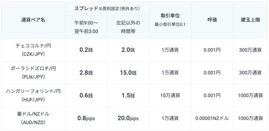 GMOインターネットグループのGMOフィナンシャルホールディングス株式会社の連結会社で、金融商品取引業を営むGMOクリック証券株式会社(本社:東京都渋谷区、代表取締役社長:高島 秀行、以下:当社)は、2025年3月17日(月)より、店頭FX取引サービス「FXネオ」において、チェココルナ/円、ポーランドズロチ/円、ハンガリーフォリント/円、豪ドル/NZドルの4通貨ペアの取り扱いを開始いたします。