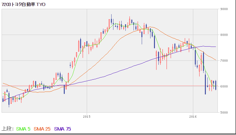 7203 トヨタ自 現在値 / 6,270 前日比/基準値比(%) / -80 (-1.26%)