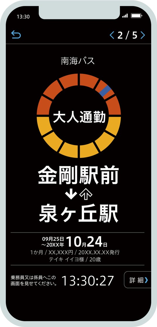 南海バス、南海ウイングバスの各種スマホ定期券は、「QUICK RIDE」限定での販売です。事前にキャッシュレスで購入できるため、チケット購入のために販売窓口に赴く必要がありません。使い方は、運賃精算時にスマホの画面を乗務員に見せるだけです。購入から利用までを非接触で完結でき、利用者と事業者の便利で安全・安心な暮らしに貢献します。