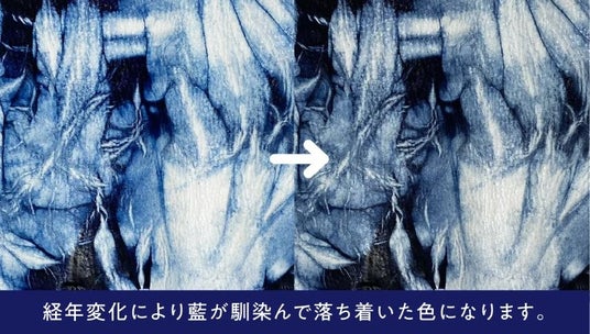 強い擦れなどにより色が移る懸念などございます伝統の染色技術ということをご理解のうえご使用ください。 耐光性3級未満となりますが、自然素材の経年をお楽しみいただければと思います。