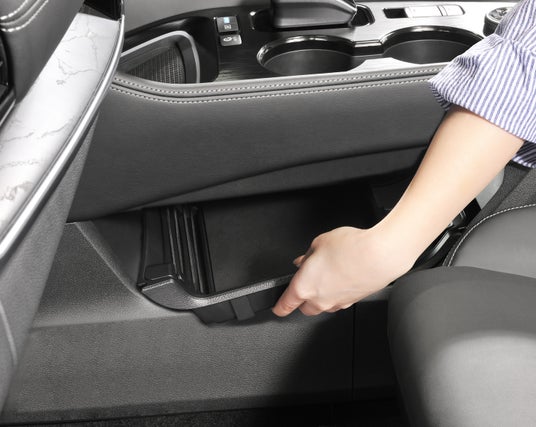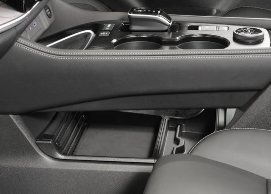 ロアコンソールにフィットするよう設計。また、内装と隣り合うトレーのふちは、可能な限りクルマに合わせて表面処理(シボ加工)・調色を行い、一体感を高めました。