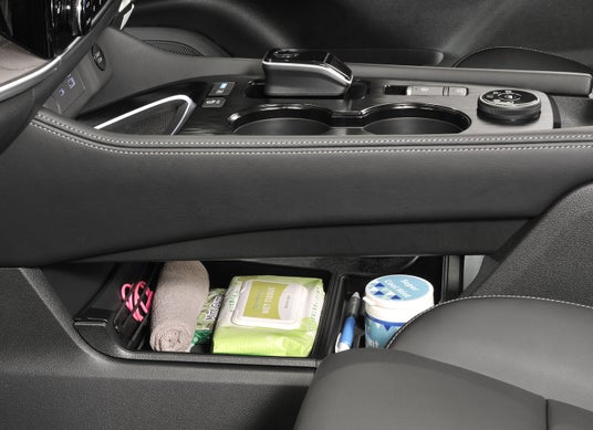 1:ロアコンソールを有効活用した収納トレー。助手席にも便利