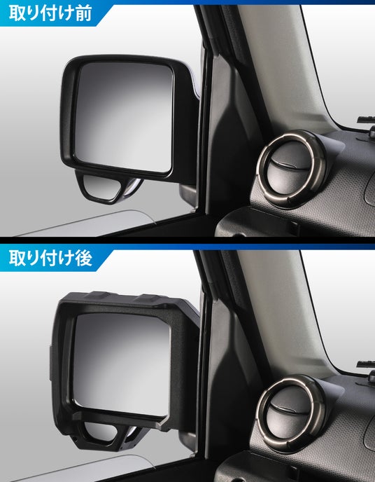 株式会社カーメイト(本社:東京都豊島区)は、ジムニー/ジムニーシエラ(JB64/JB74)専用設計のドレスアップパーツ「ジムニー専用 ドアミラーカバー」を、2月27日(木)に公式オンラインストア他、ECサイトにて発売いたしました。本製品を純正ドアミラーに装着することで、より無骨でタフなイメージを演出。また、装着により追加される2つのサイドアンダーミラー(上写真)が、前輪後輪付近の死角を補い運転をサポートします。特長等詳細は以下をご覧ください。