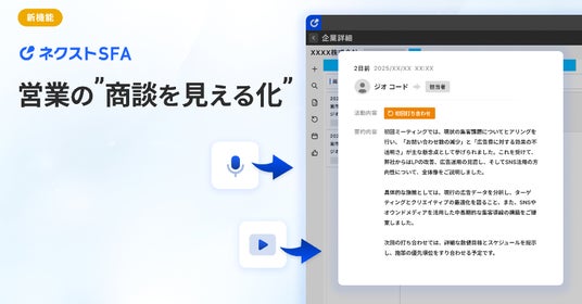 - 営業支援ツール「ネクストSFA」が「AI履歴登録機能」をリリース、音声やテキストメモからAIが企業特定と履歴登録を自動補正 2025/12/04