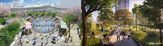 「高輪ゲートウェイ」という名称は、江戸時代、東海道の江戸府の門となっていた「高輪大木戸」に由来しています。東海道五十三次との関わりにちなみ、TAKANAWA GATEWAY CITY内には「53Playable Park」がつくられます。南北約1km以上にわたって誕生する駅や広場からなる遊び場(Park)には、多様な遊びや憩いの場になるビオトープがあり、都心にありながらのびのびと過ごすことができます。お子様たちの成長や興味、天気によって、さまざまな場所に出かける予定です。