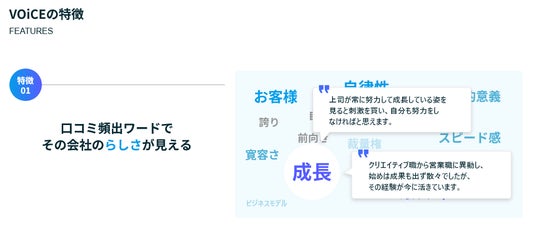 自分が損しないように、失敗しないように“口コミで裏取りをする”という後ろ向きな会社選びではなく、現職社員、中でも活躍社員の声に触れることで、自分の成長や活躍を志向した会社選びする人を一人でも多く増やしていきたい。それが各人の幸せにつながるというVOiCEのメッセージを強く伝えています。