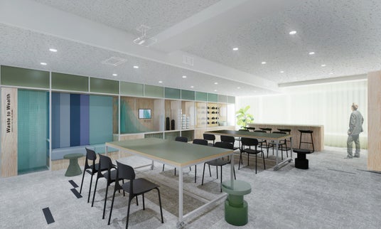 廃棄物の全量リサイクルを目指し、自社再生素材を活用した内装へ