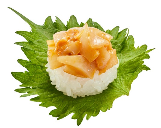 つぶ貝のコリコリとした食感と濃厚なうにの旨みは相性抜群!大葉のさわやかな香りともベストマッチ!