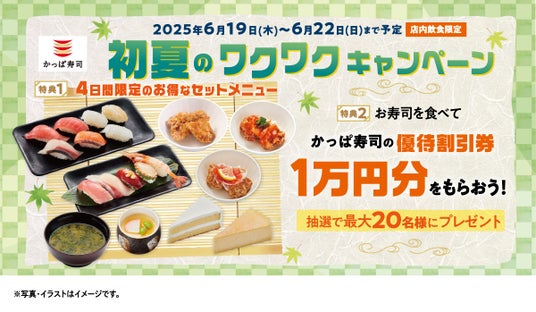 かっぱ寿司の優待割引券1万円分が抽選で最大20名様に当たるチャンス! 初夏のごちそうをお得なセットメニューで楽しめる『初夏のワクワクキャンペーン』開催※1