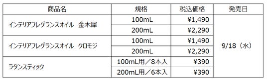 秋限定の香りは、「金木犀」と「クロモジ」の2種類です。