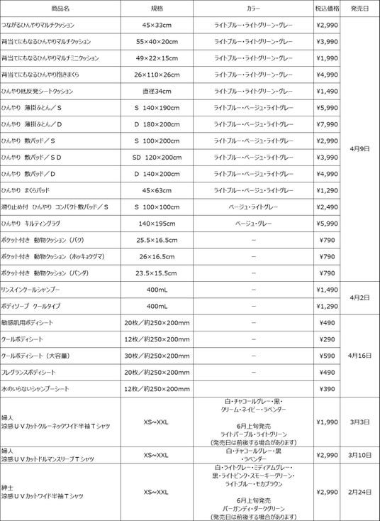 また昨年もご好評いただいた、ひんやりした肌触りの素材を使用した薄掛ふとん、敷パッド、ボックスシーツ、まくらカバーなどの 寝装シリーズを今年も販売します。